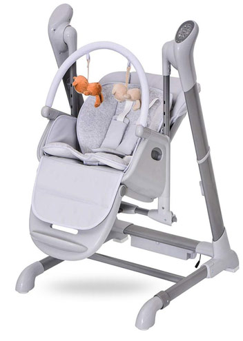 Enfin, achevons avec la balancelle Bebe2Luxe Splity 3-en-1. C’est un produit qui offre trois fonctions en une et qui peut faire à la fois : chaise haute, transat et balancelle. Un accessoire modulable à souhait qui peut accompagner l’enfant jusqu’à ses 36 mois. Nous retrouvons sur ce modèle 8 vitesses de balancement, 12 mélodies pour apaiser l’enfant (Lecteur MP3) et une arche à jouets avec deux peluches en tissus.